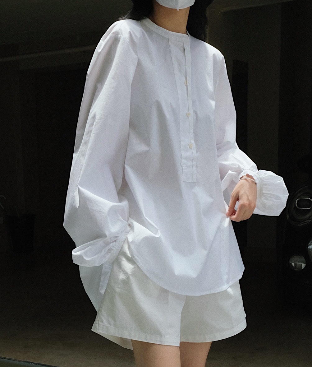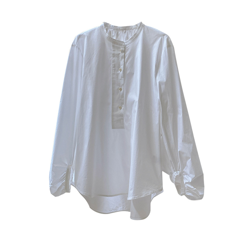 Commuter Style Round Neck Loose Lantern Sleeve Women's Shirt, Cotton and linen fabric is non-elastic, lightweight, soft and comfortable to wear. It can be matched with all kinds of bottoms.