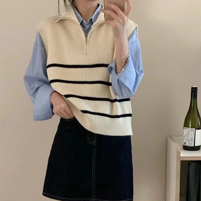 Lapel sleeveless sweater, has good warmth, moisture wicking and breathability, soft handfeel, elastic, soft fabric, elastic, suitable for daily wear, easy to match with a variety of underwear.