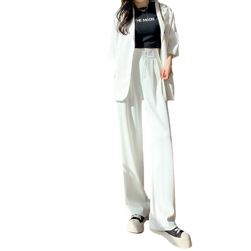 Straight wide-leg suit pants, fabric stretch, elastic waist design, comfortable to wear, suitable with sneakers, sandals, slippers